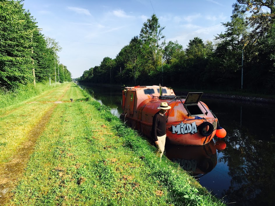 Crossing Europe on inland waterways, 8km/hour on a refurbished Lifeboat from a Scottish oil platform.