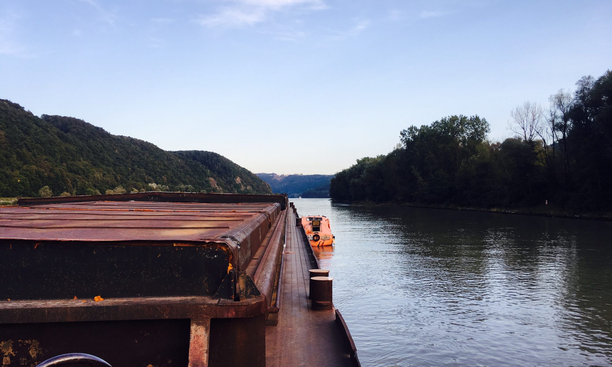 Our host tells us to stop a few km downriver on a small inlet pontoon from a guesthouse/restaurant in Obermuhl where we end up staying for a week, as the water levels start to change dramatically everyday and we are advised to wait for it to stabilise. After a week, and with the water levels almost reaching the maximum allowed for small boats to navigate, we decide to set off or we would get stuck there for at least another week. We fastly reach Linz! Our boat is doing 18km/h, the river is fast and full of whirlpools and driftwood.