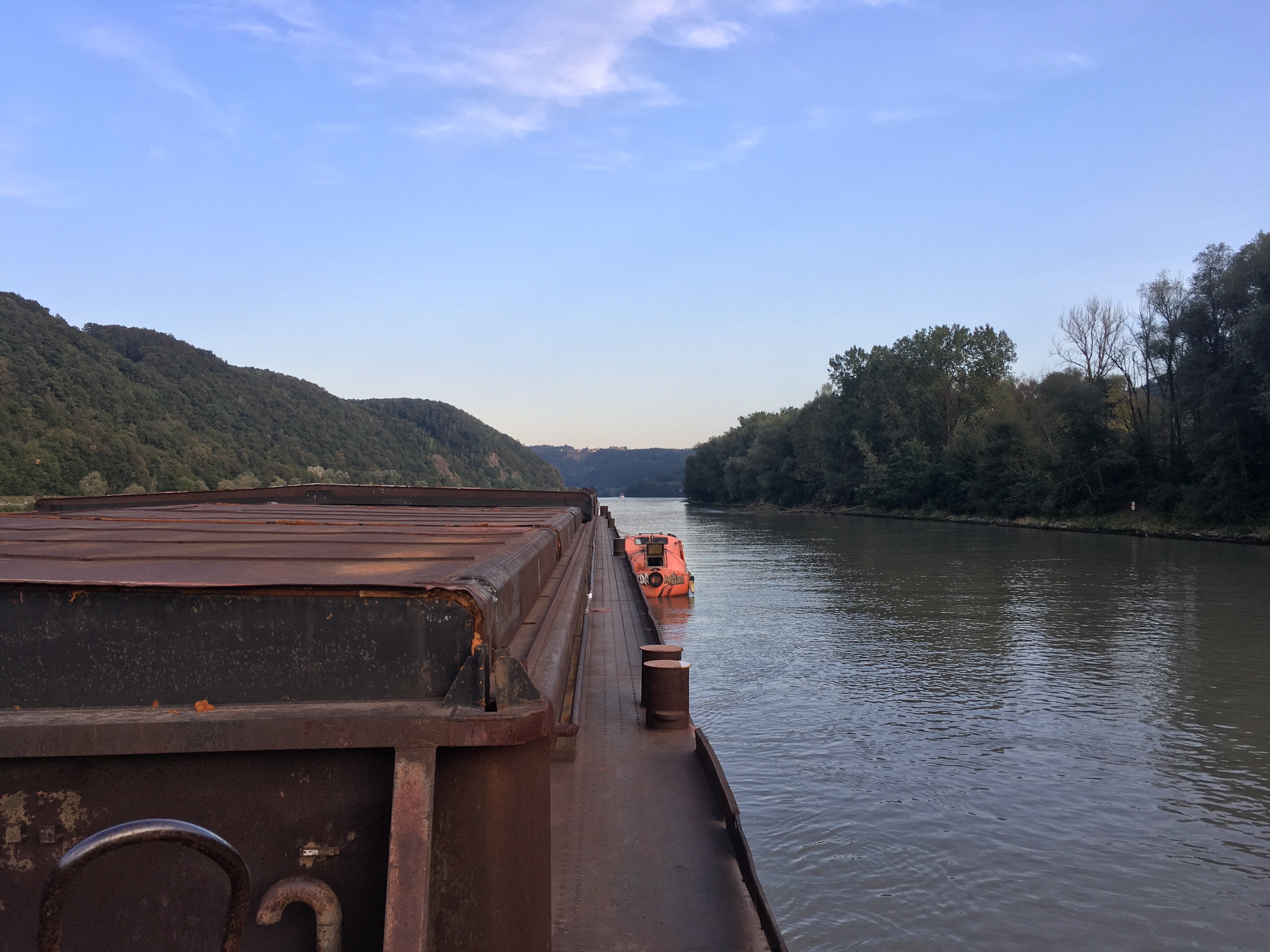 Crossing Europe on inland waterways, 8km/hour on a refurbished Lifeboat from a Scottish oil platform.