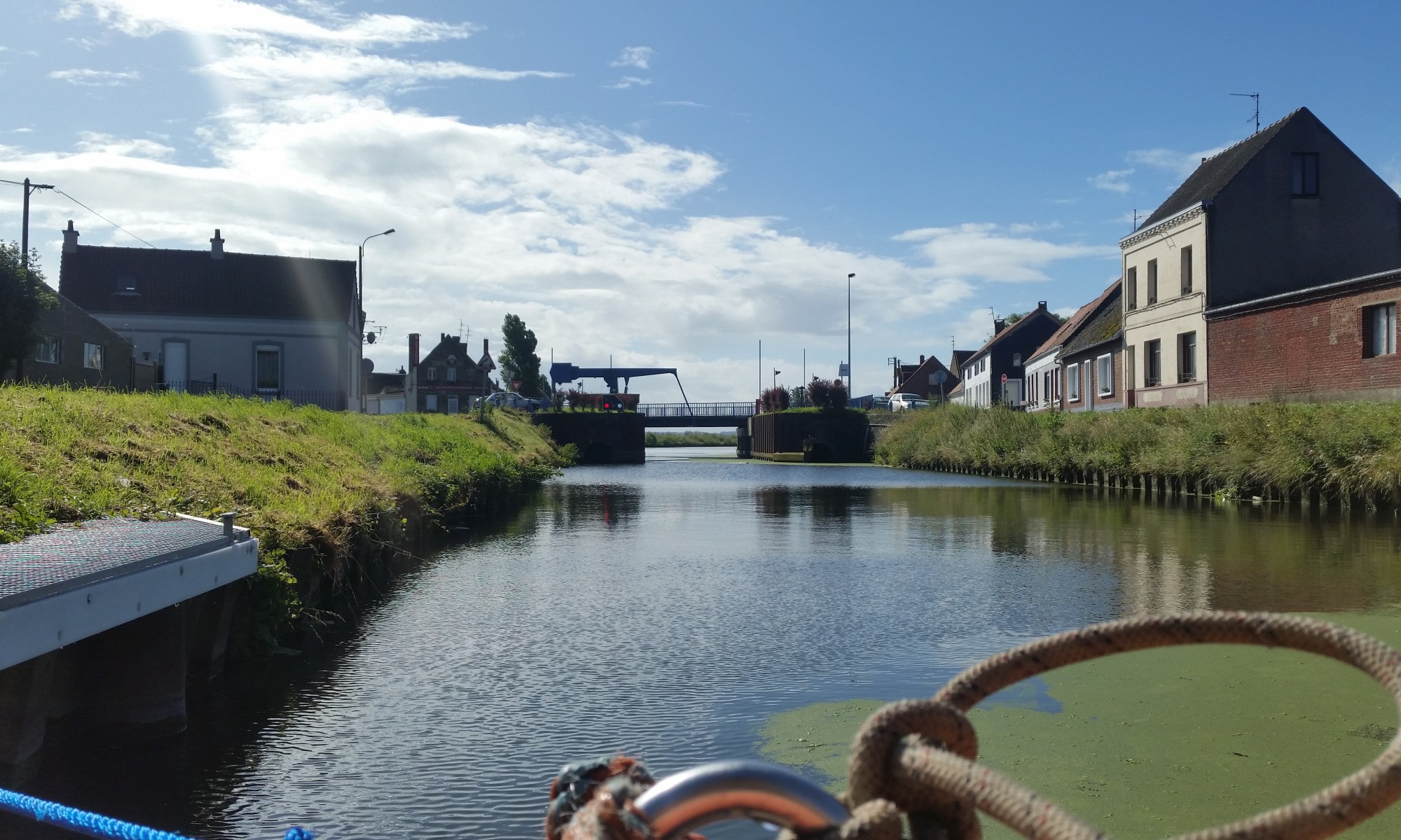 On this main route to Paris from the big Port of Dunkirk, we decide to turn East along the Canal de la Sensée and South along the Canal de l’Escaut that turns into Canal de Saint-Quentin in Cambrai, instead of continuing South along the busy Canal du Nord. This alternate route will be a bit longer but much more relaxed and picturesque we are told and will take us along the green valleys of the Champagne region and the beautiful towns of Saint-Quentin, Reims, Chateau-Thierry or Beaux.